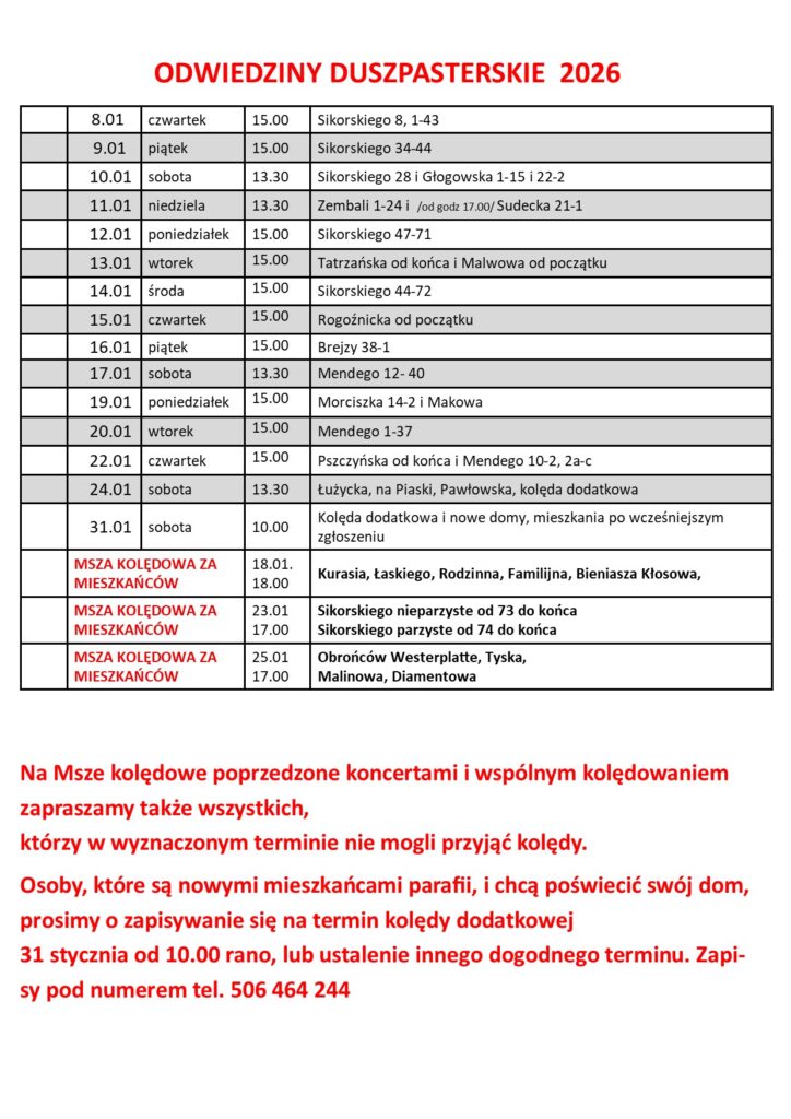 PLAN KOLĘDY 2026
